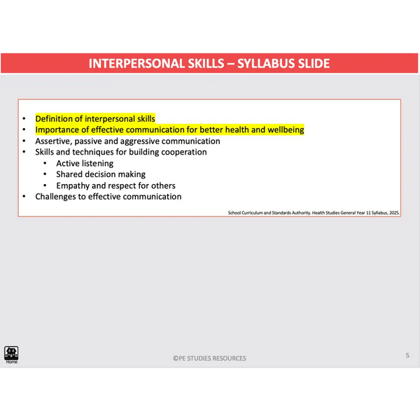 🖥️ Year 11 General Health Studies PowerPoint – Interpersonal Skills, Self-Management Skills & Principles, Frameworks and Models