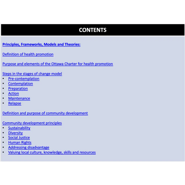🎓 The presentation develops students’ understanding of how self-awareness, motivation, and regulation link to health outcomes, while also highlighting the importance of communication, cooperation and leadership when working in groups. It also introduces frameworks such as community development and the Ottawa Charter, equipping students with both theoretical knowledge and practical applications for promoting health.