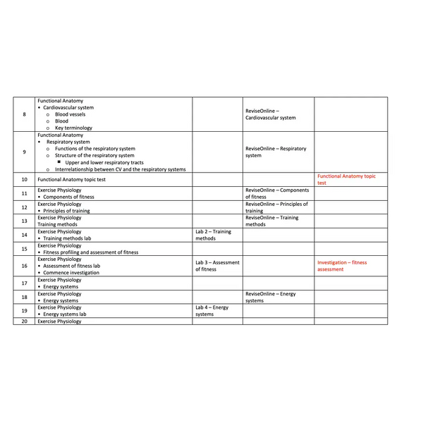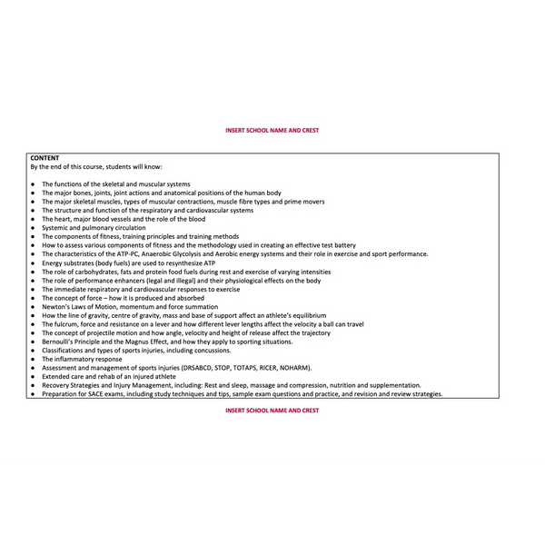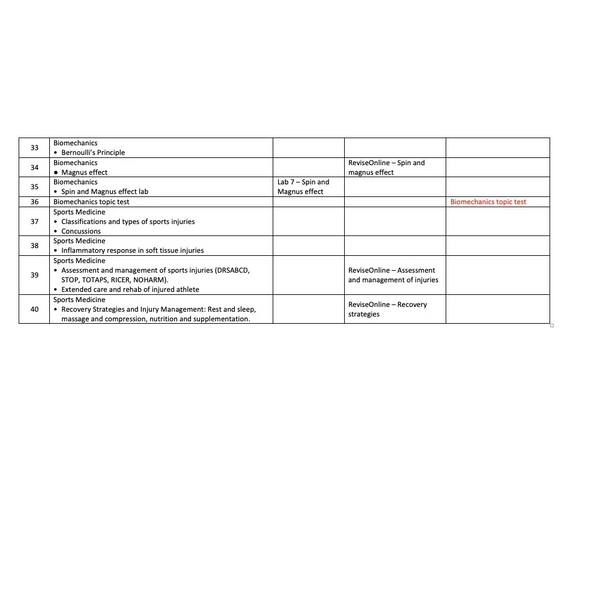This SACE Sport Science course offers a comprehensive and in-depth exploration of key sport science concepts and how they can be applied to improve performance in sport and exercise. With 40 lessons, students develop a strong foundation for Stage 1 and Stage 2 Physical Education, covering anatomy and physiology, energy systems, fitness testing, training principles and methods, nutrition, biomechanics, recovery strategies and injury management.